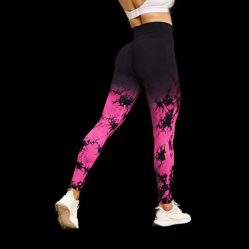 การบีบอัดกีฬาไม่มีรอยต่อScrunchไนลอนElastaneกางเกงTie DyeสูงเอวTummy ControlออกกําลังกายสตรีโยคะLeggings