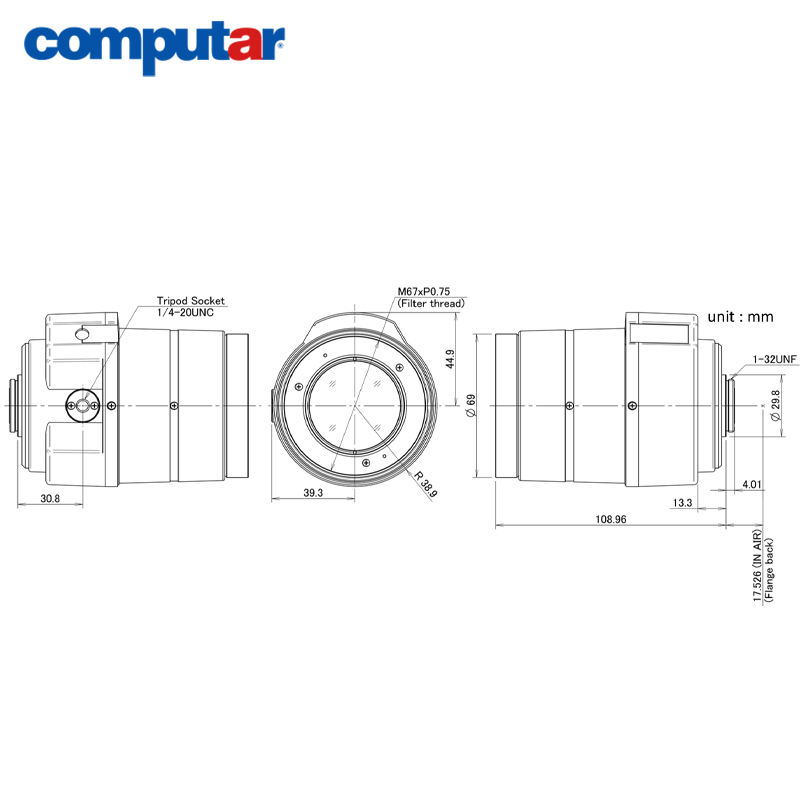 เลนส์ซูมมอเตอร์ไฟฟ้า Computar VL6Z1626UC-MPYIR 6X 12MP 1.1 นิ้ว 16 มม.-96 มม. ปรับโฟกัสและรูรับแสงอัตโนมัติแบบไฟฟ้า ขั้วต่อ C-Mount