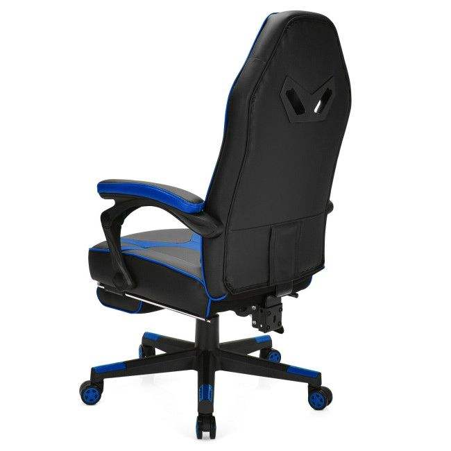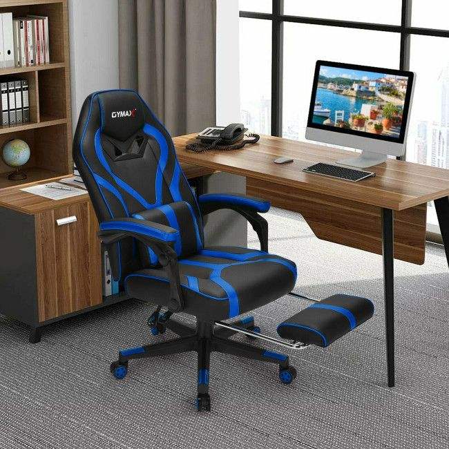 เก้าอี้นวดคอมพิวเตอร์สำหรับเล่นเกมพร้อมที่วางเท้าเพื่อความสบายและผ่อนคลายขณะเล่นเกมโปรดของคุณ