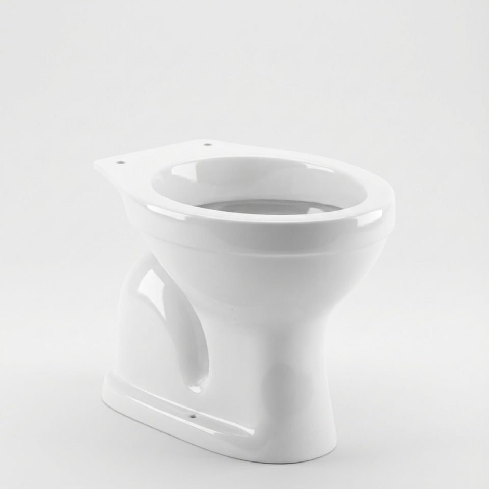 โถสุขภัณฑ์เซรามิกแบบยาวทรงโค้งมน ติดตั้งบนพื้น พร้อมถังเก็บน้ำแบบ S-Trap สำหรับห้องน้ำโรงแรมและวิลล่า ดีไซน์ทันสมัย