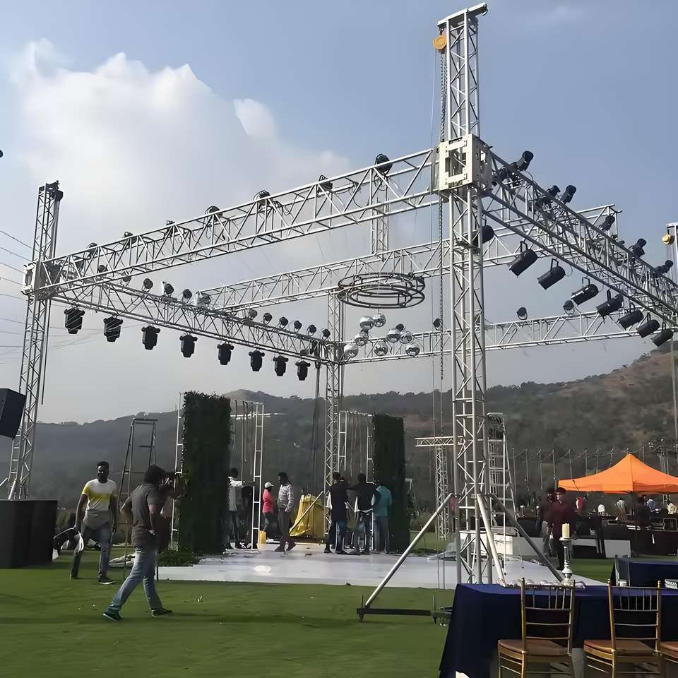 เสาค้ำสำหรับแสดงดนตรีสำหรับเวทีคอนเสิร์ตโครงยึดสำหรับดีเจโครงสร้างเวทีอะลูมิเนียมแบบเคลื่อนที่ได้
