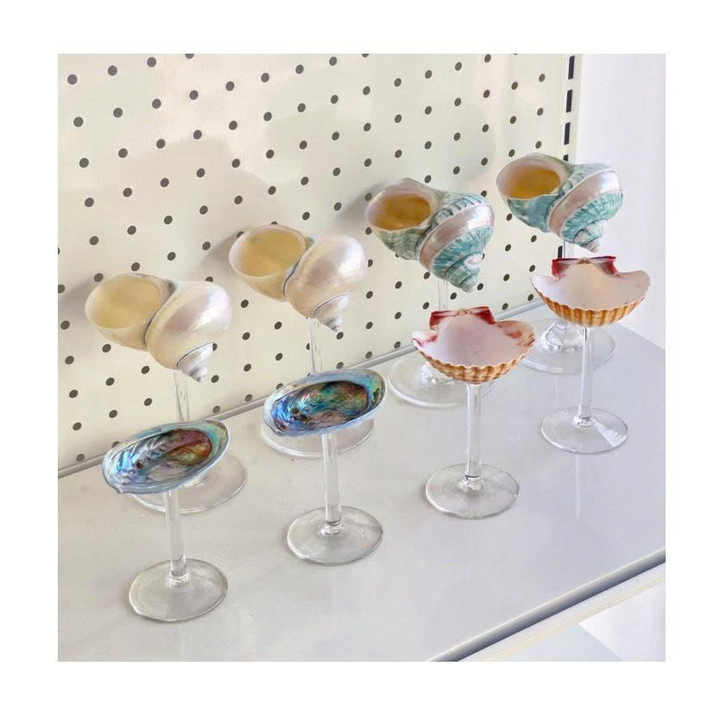 แก้วไวน์เปลือกหอยเปลือกหอยธรรมชาติระดับพรีเมียมดีไซน์ทำด้วยมือที่สมบูรณ์แบบสำหรับการรับประทานอาหารจำนวนมาก