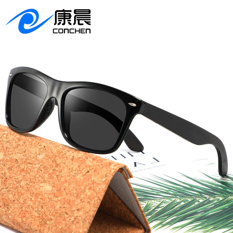 คอนเชนแว่นกันแดดทรงสี่เหลี่ยมสีดำสำหรับผู้ชาย กรอบพีซี เลนส์ทาค ป้องกันรังสียูวี 400 สำหรับการเดินทาง ขับรถ แฟชั่นเสื้อผ้า