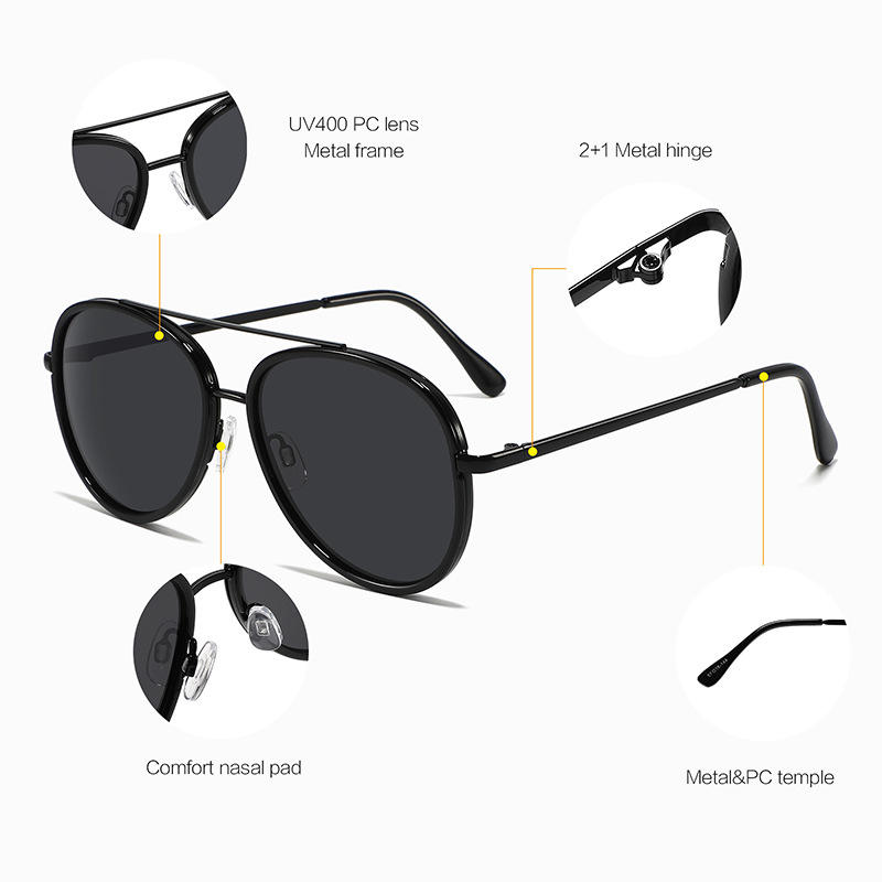 แว่นกันแดดทรงรี Conchen กรอบโลหะสีดำ ป้องกันรังสียูวี 400 สำหรับทุกเพศ เหมาะสำหรับขับรถ