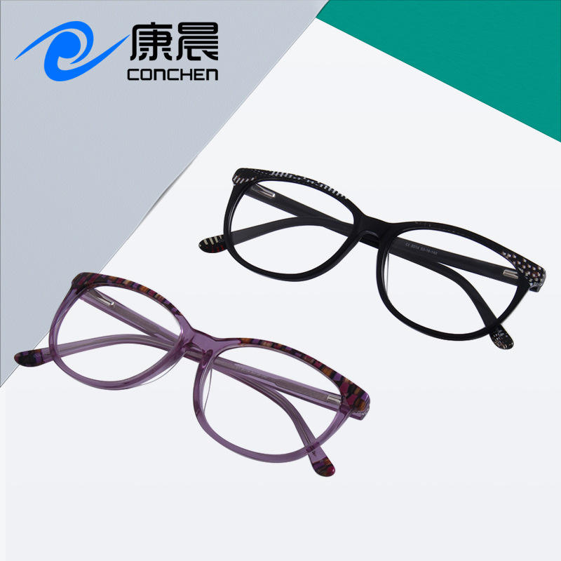 กรอบแว่นตา Conchen Oval Plano ป้องกันแสงสีฟ้า กรอบเต็มอะซิเตท ยูนิเซ็กซ์ เวินโจว 8014