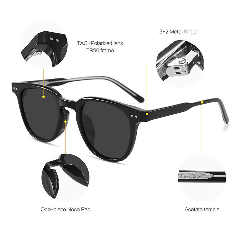 คอนเชนแว่นกันแดดผู้หญิงกรอบสีดำเลนส์ TAC ป้องกันรังสียูวี 400 แฟชั่นการเดินทางขับรถป้องกันแสงแดด