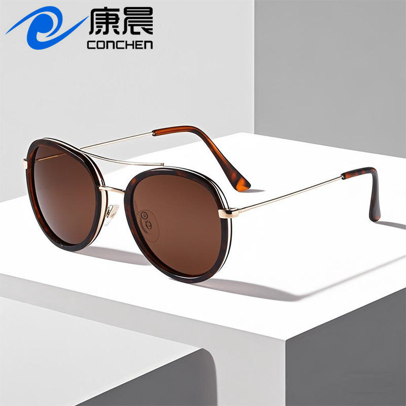 แว่นกันแดดผู้หญิงทรงกลมกรอบโลหะ ป้องกันรังสียูวี 400 เลนส์โพลาไรซ์ TAC แฟชั่นสำหรับการเดินทาง ขับรถ ตกปลา