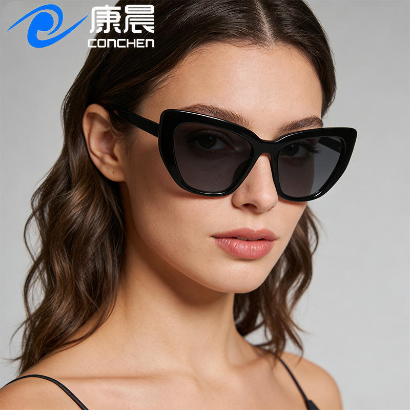 คอนเชนแว่นกันแดดทรงแคทอายสำหรับผู้หญิง กรอบพลาสติก เลนส์พีซี ป้องกันรังสียูวี 380 อุปกรณ์เสริมสำหรับการเดินทางแฟชั่น