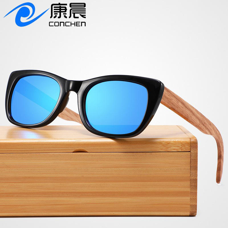 แว่นกันแดดโพลาไรซ์ทรงไม้ Conchen กรอบสีดำ เลนส์ TAC ป้องกันรังสียูวี 400 สำหรับทุกเพศ ป้องกันแสงแดด แฟชั่น เหมาะสำหรับการเดินทางและขับรถ