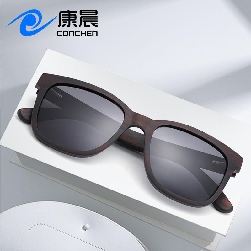 แว่นกันแดดไม้ Conchen สำหรับผู้ชาย กรอบทรงเหลี่ยม เลนส์โพลาไรซ์ TAC ป้องกันรังสียูวี 400 สีดำ รุ่น W3098 ป้องกันแสงแดด แฟชั่นสำหรับการเดินทาง