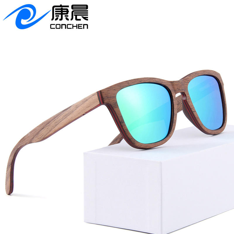 แว่นกันแดดไม้ Conchen รุ่น W3052 เลนส์โพลาไรซ์ TAC ป้องกันรังสียูวี 400 สำหรับทุกเพศ เหมาะสำหรับตกปลา ท่องเที่ยว และแฟชั่น