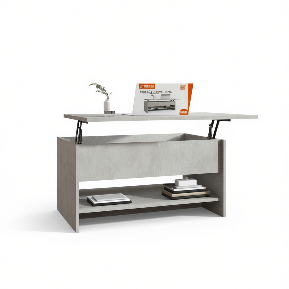 โต๊ะกาแฟไม้เอ็นจิเนียร์สีเทาคอนกรีต ขนาด 31.5x19.7x15.7 ซม. แบบขยายได้ สไตล์โมเดิร์นมินิมอล เฟอร์นิเจอร์ห้องนั่งเล่น