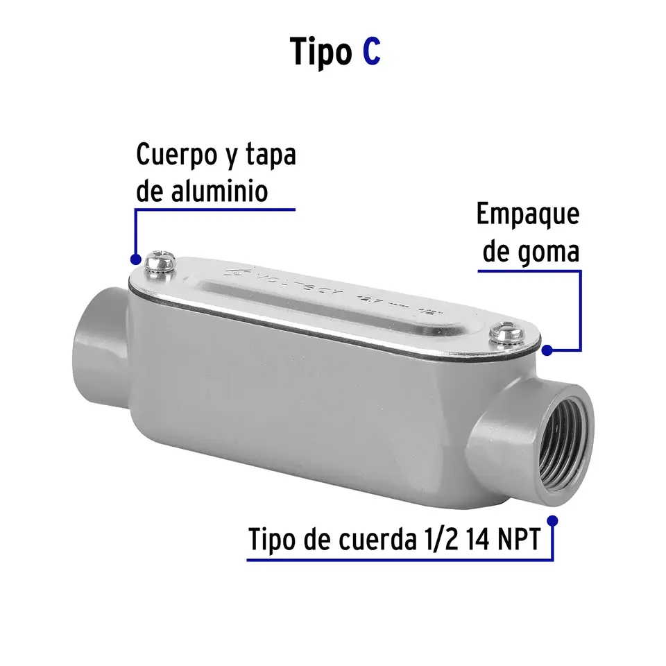 Condulet 1/2' Electric Conduit in Box of 5 Units Volteck Connection Type C Made of Aluminium and PP Material