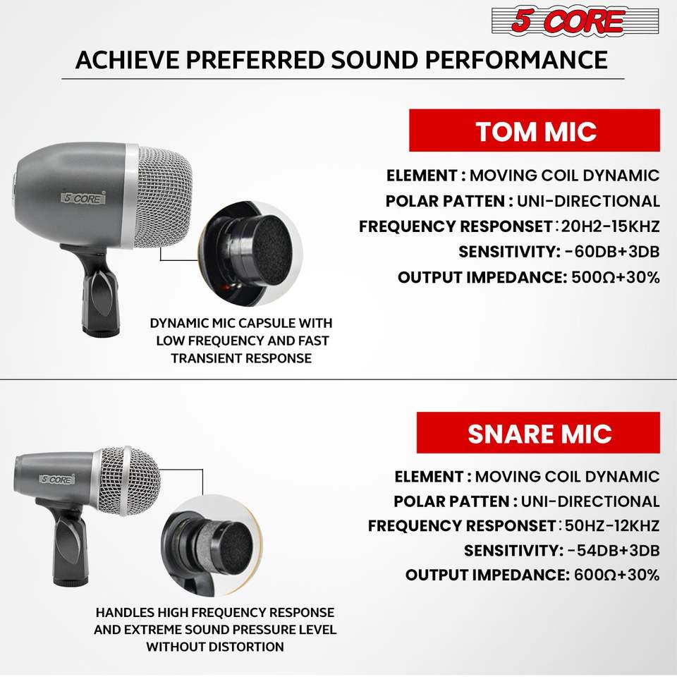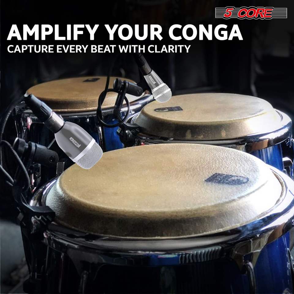 Conga ไมโครโฟนคอนเดนเซอร์ XLR Cardioid แบบทิศทางเดียวชุดไมโครโฟนไมโครโฟน Snare ชุด TOM-สีเทา