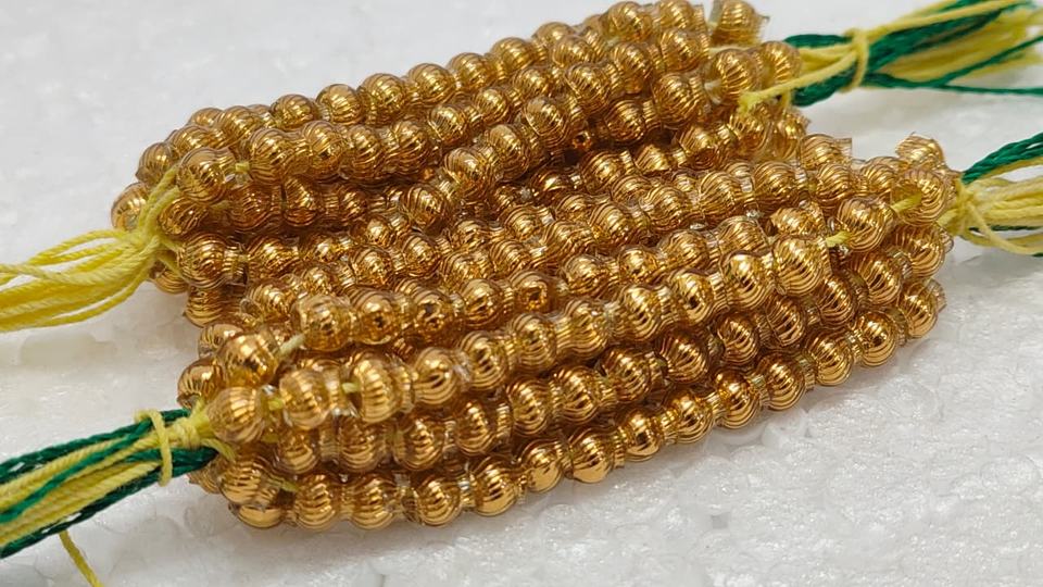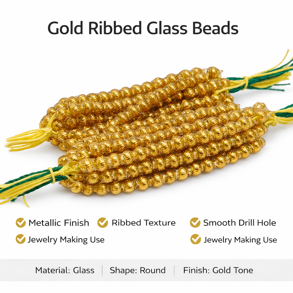 ลูกปัดแก้วทรงกลมสีทองลายริ้วแบบ Conifer บรรจุกล่องสำหรับทำเครื่องประดับ ลูกปัดสไตล์เมทัลลิกสำหรับสร้อยคอและสร้อยข้อมือ