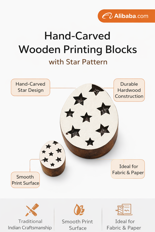 บล็อกพิมพ์ลายไม้แกะสลักลายดาว รูปทรงตามสั่ง งานศิลปะพื้นบ้าน ดีไซน์ทนทาน สำหรับงานพิมพ์บนผ้า