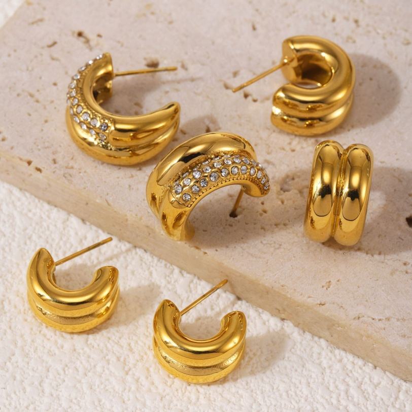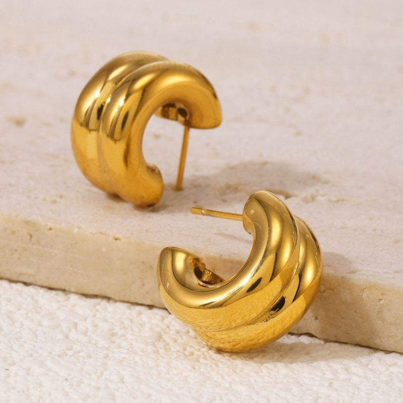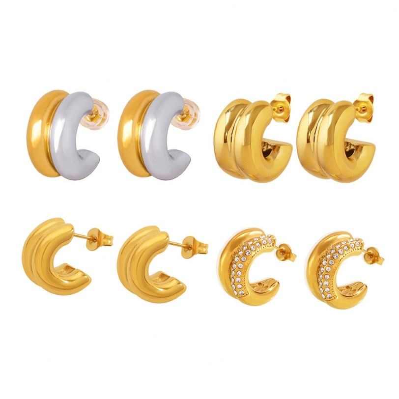 ต่างหูรูปทรง CC สีทองเงินแบบวงแหวนคู่ เชื่อมต่อกัน ทำจากสแตนเลสสตีล ชุบ PVD สำหรับผู้หญิง