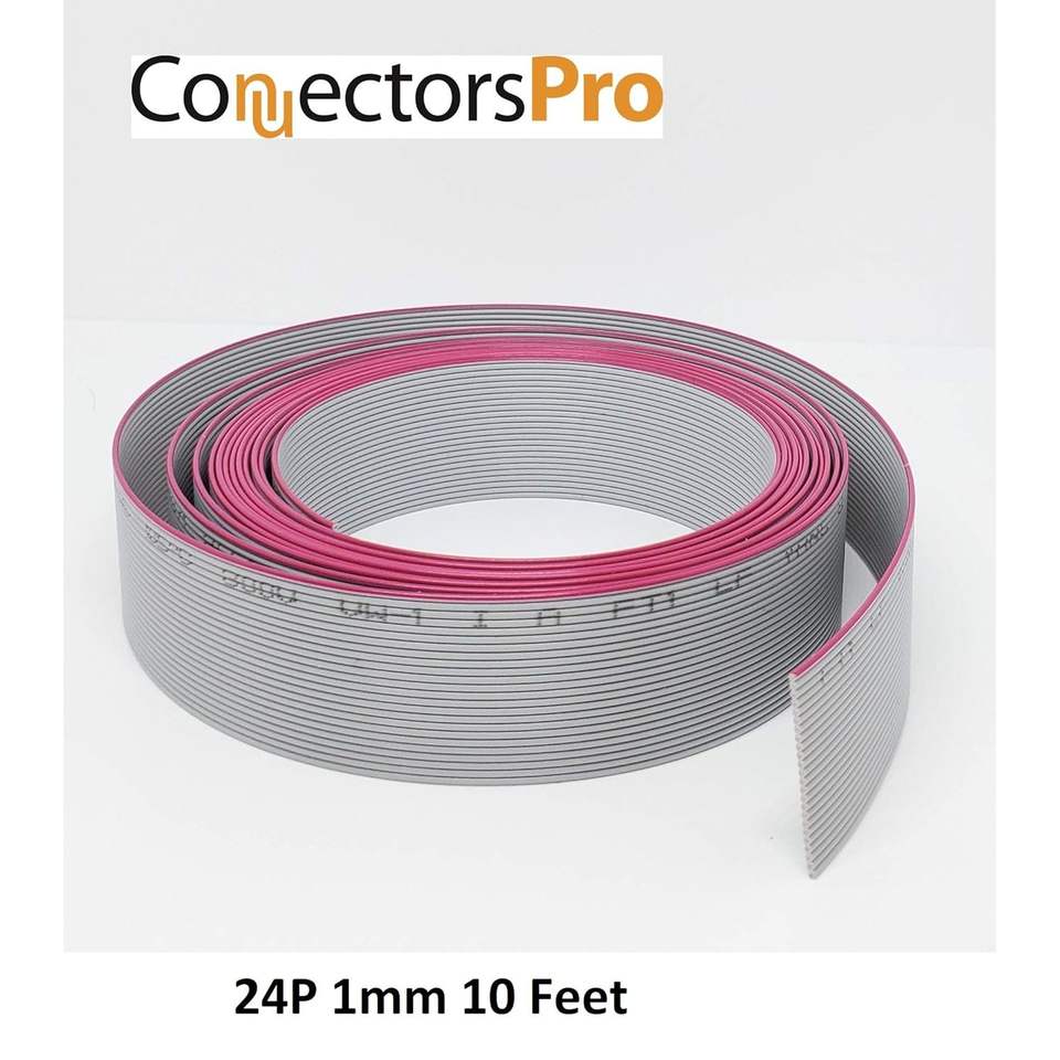 คอนเนคเตอร์โปร สายแบนแบบริบบิ้น ยาว 10 ฟุต 24 พิน ระยะห่างระหว่างพิน 1 มม. สาย 24 ตัวนำ แบบ IDC สำหรับขั้วต่อ FFC FPC ระยะห่างระหว่างพิน 2 มม.