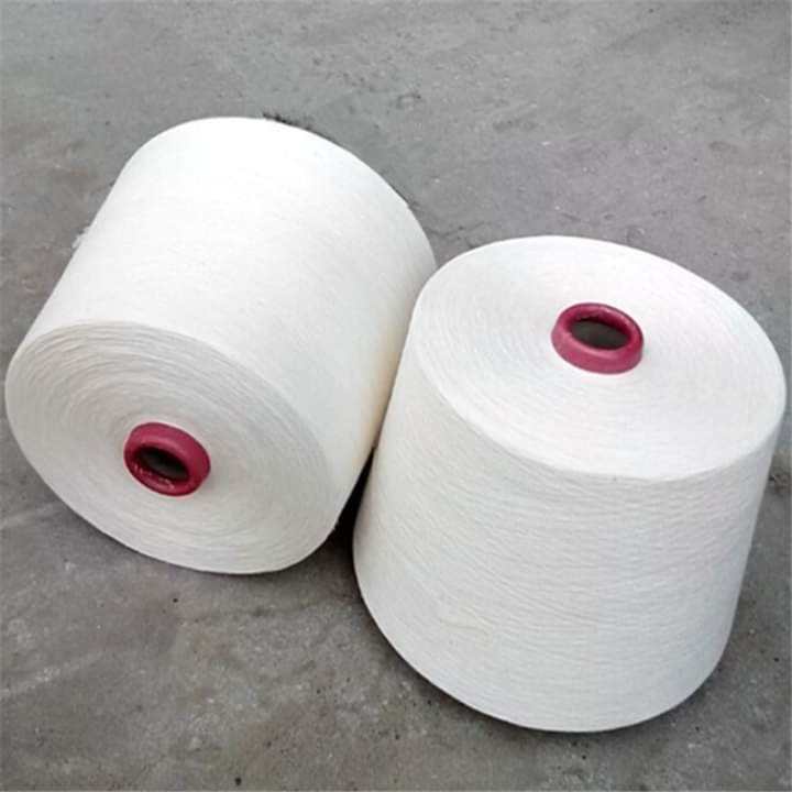 เส้นด้ายคุณภาพคงที่ NE 28s/1 ผลิตจากฝ้าย 65% โพลีเอสเตอร์ 35% ป้องกันการเป็นขุย แบบริงสปัน สีขาวดิบ หลายสี สำหรับงานทอ