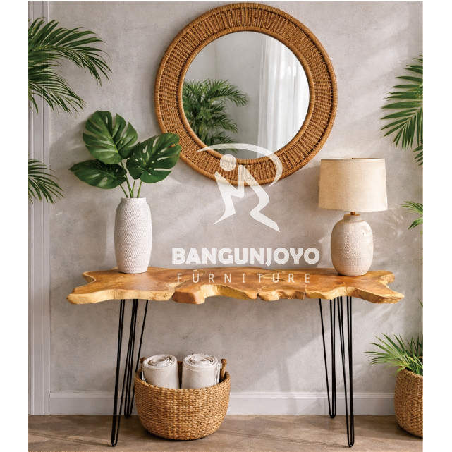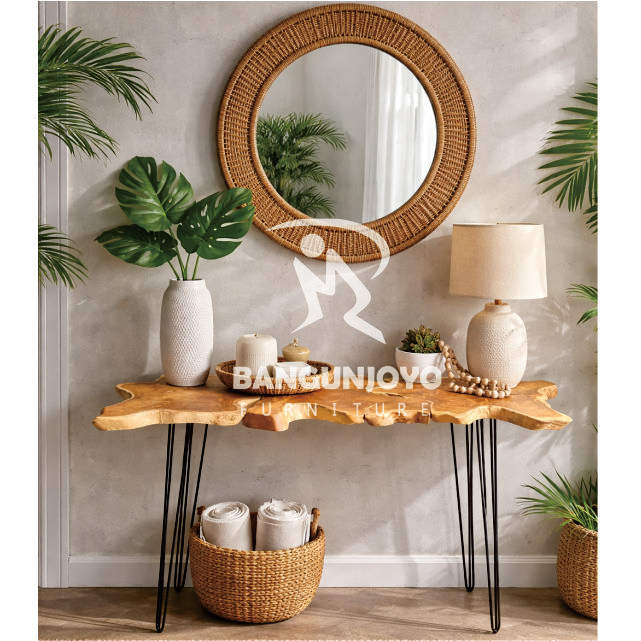 โต๊ะคอนโซลทำจากไม้สักแท้ งานแฮนด์เมด ทนทาน เป็นมิตรกับสิ่งแวดล้อม ดีไซน์ทันสมัยเรียบง่าย เหมาะสำหรับทุกห้องในบ้านของคุณ