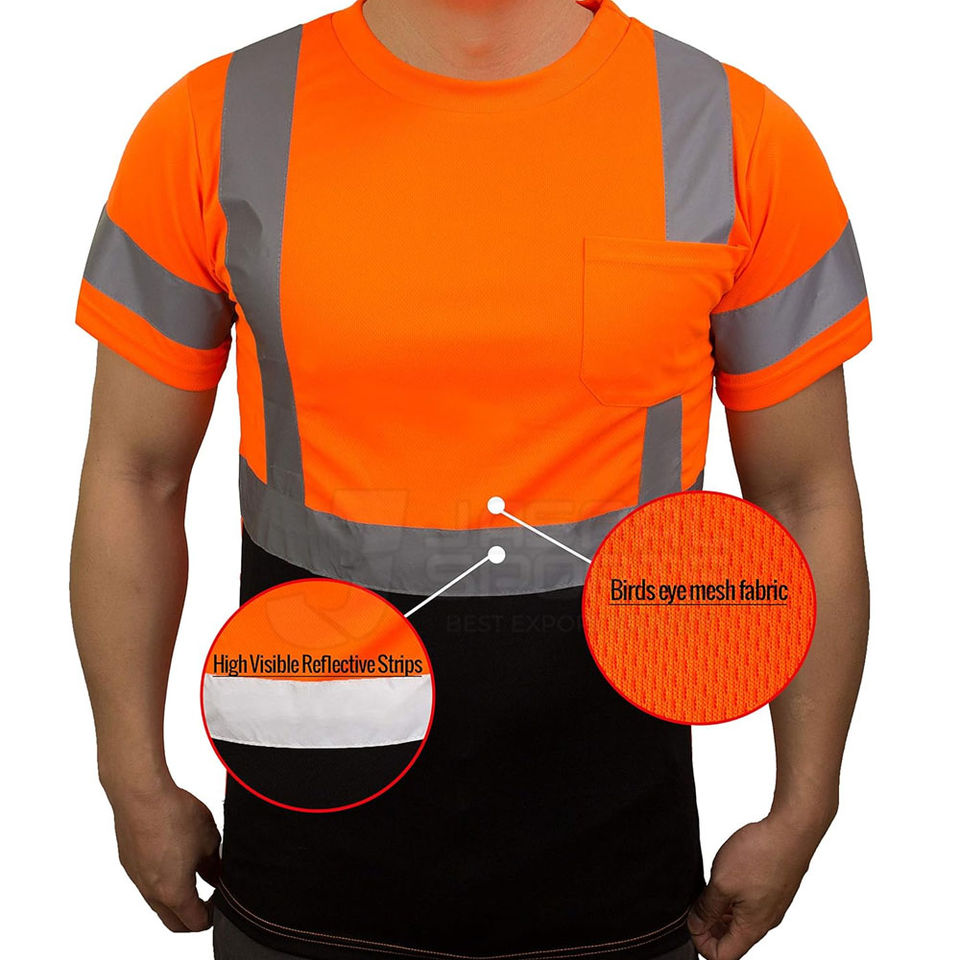 เสื้อยืดนิรภัยแบบสตรีทแวร์สำหรับผู้ชาย แถบสะท้อนแสง Hi-Vis มองเห็นได้ชัดเจน แขนสั้น ผ้าฝ้าย 100%