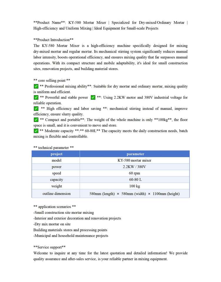 เครื่องผสมปูนที่เหมาะสำหรับโครงการก่อสร้างที่มีความจุในการเก็บสารละลาย 60-80 ลิตร