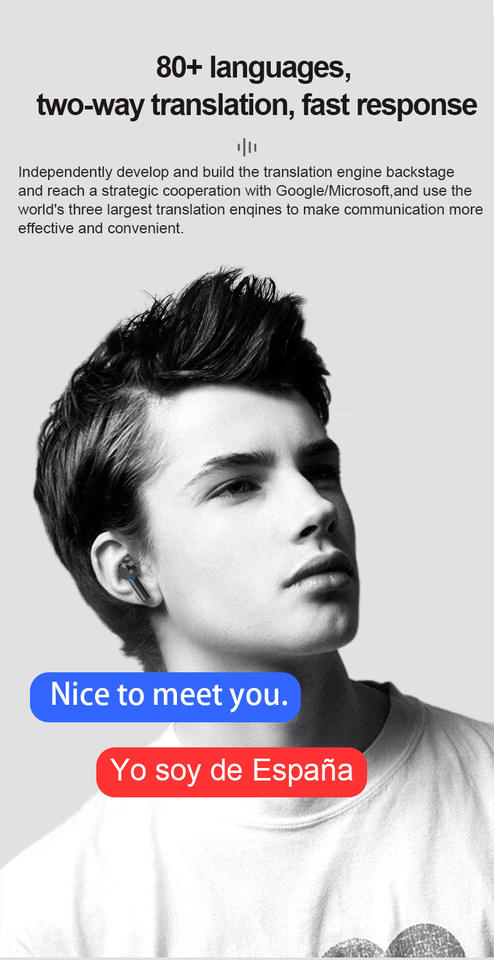 เครื่องใช้ไฟฟ้าไร้สาย BT 5.0ปุ่มสัมผัสเพลงหูฟังธุรกิจ80ภาษาแปลหูฟัง
