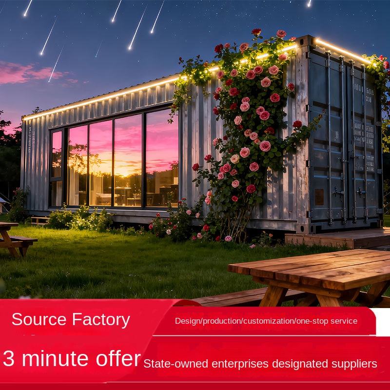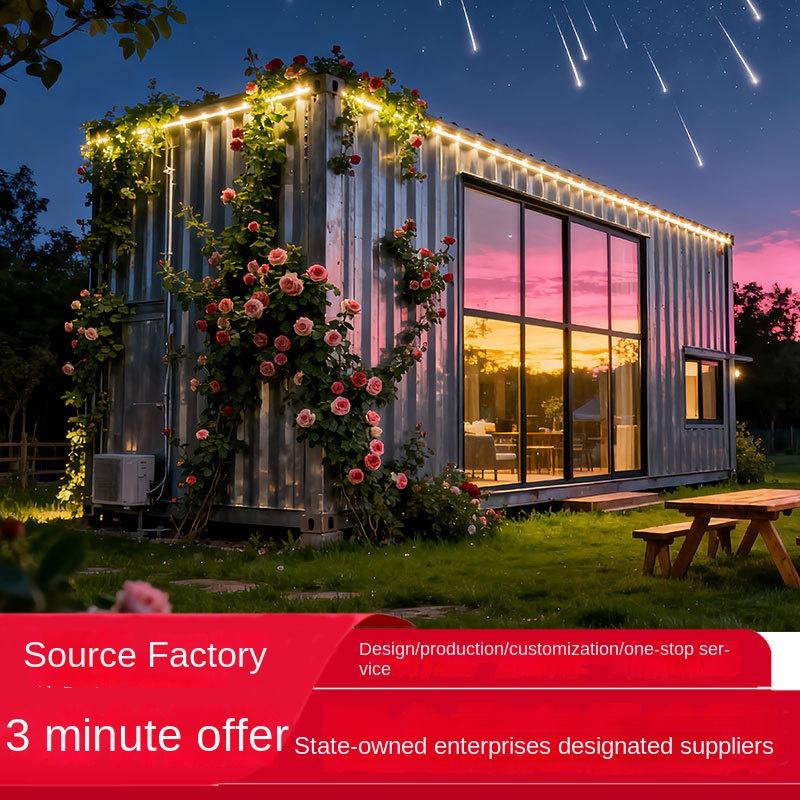 ห้องพักเคลื่อนที่แบบตู้คอนเทนเนอร์ บ้านพักตากอากาศชนบท อาคารชั่วคราวกลางแจ้ง ห้องแบบกล่อง ประกอบง่าย ประกอบเร็ว บรรจุภัณฑ์แบบกล่อง