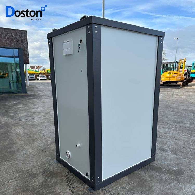 ตู้คอนเทนเนอร์ห้องน้ำแบบพกพาที่ติดตั้งล้อสำหรับห้องน้ำและมีล้อสำหรับจอดรถ
