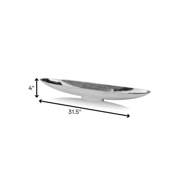 Contempo 32\" Shiny Silver Long Boat Tray Antique Metal Serving Tray for Food and Fruit Decorative Iron Boat Style Tray
