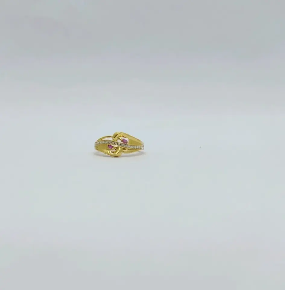 แหวนทองคำ 22K ดีไซน์ร่วมสมัย ประดับเพชรพาเว่ระยิบระยับและพลอยสีชมพูทับทิมสำหรับผู้หญิง