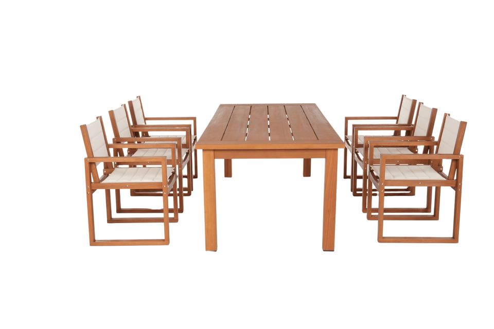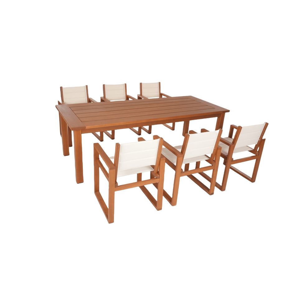 ชุดรับประทานอาหารกลางแจ้ง6ชิ้นแบบร่วมสมัยลายไม้สักเนื้อแข็งทนทานต่อสภาพอากาศสวนและลานสีขาว | ผู้ผลิตเวียดนาม