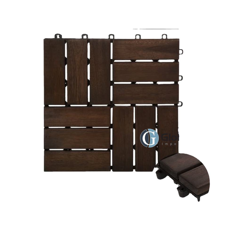 กระเบื้องพื้นไม้สักอะคาเซียร่วมสมัย 12 แผ่น สำหรับปูพื้นภายนอก กันน้ำ ผลิตจากวัสดุคอมโพสิต PVC ติดตั้งแบบคลิกล็อค ขนาด 300x300 มม.