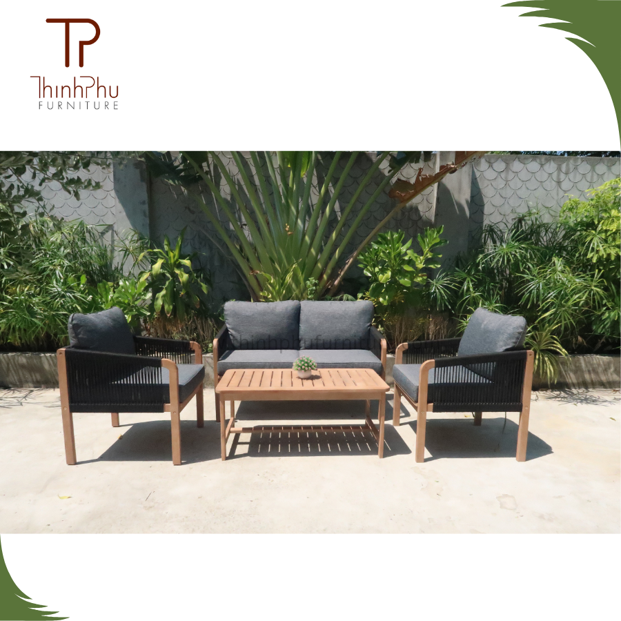 ชุดโซฟาไม้อะคาเซียร่วมสมัย (4ชิ้น) พร้อมโต๊ะพับได้เป็นมิตรต่อสิ่งแวดล้อมเฟอร์นิเจอร์สำหรับสวนและโรงแรมขายส่งในเวียดนาม