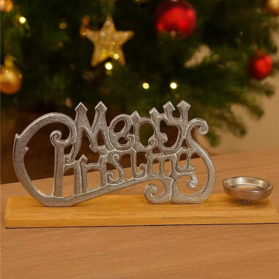 ชุดเชิงเทียนอลูมิเนียมร่วมสมัยเน้นคริสต์มาสสีทองเงางามสุขสันต์วันคริสต์มาส
