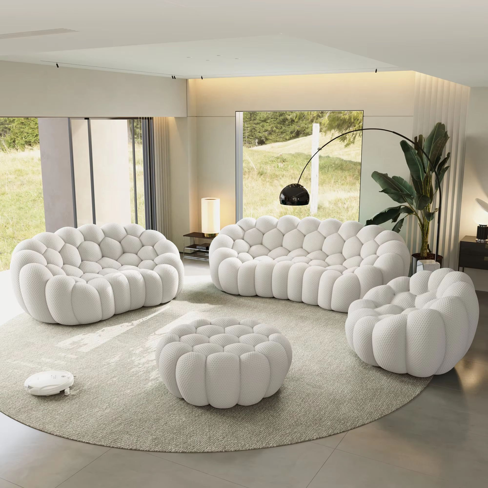 วัสดุปกคลุมกำมะหยี่: วัสดุปกคลุมกำมะหยี่ให้ความรู้สึกนุ่มและหรูหรา เพิ่มความสบายและความสวยงามของชุดโซฟา