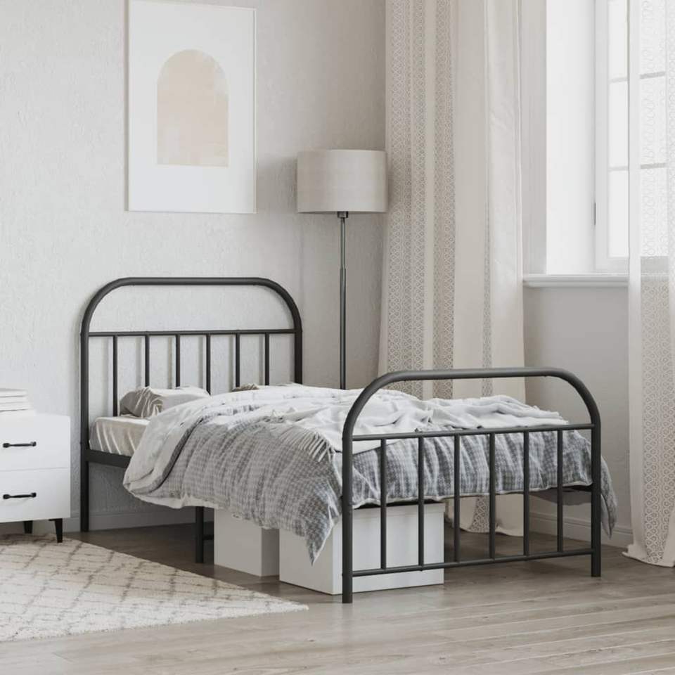 โครงเตียงเหล็กสีดำร่วมสมัยแบบเตียงคู่ทรงสี่เหลี่ยมผืนผ้า เตียงโลหะร่วมสมัย