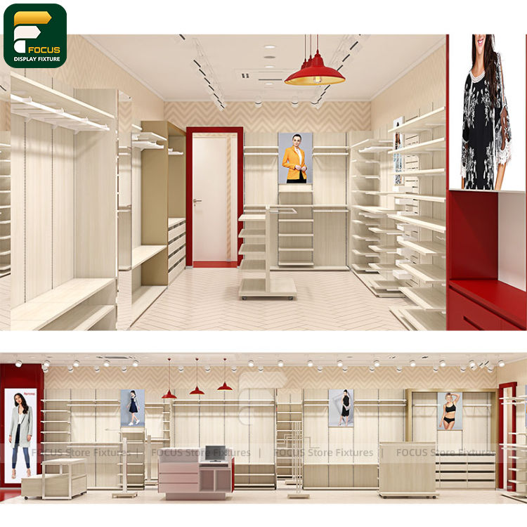 ชั้นวางเสื้อผ้าร้านค้าสมัยใหม่ เคาน์เตอร์เสื้อผ้า ตู้เสื้อผ้า ตู้โชว์กระจก เฟอร์นิเจอร์ร้านค้า
