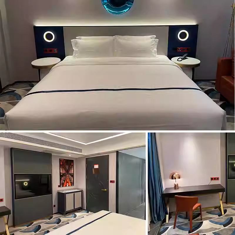 Modern Commercial Apartment Hotel Room Furniture Full King Bedroom Set Durable Wooden Bed Stylish Workstation Nightstand