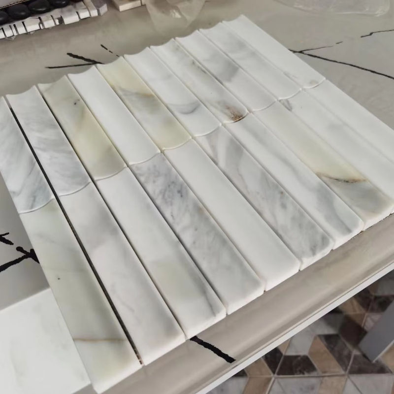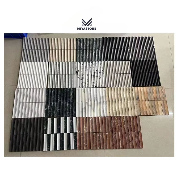 กระเบื้องโมเสคหินอ่อนลายร่องเว้าแบบร่วมสมัย หนา 12 มม. ผิวขัดเงา สำหรับตกแต่งผนังสไตล์โมเดิร์น โรงแรม ห้องน้ำ