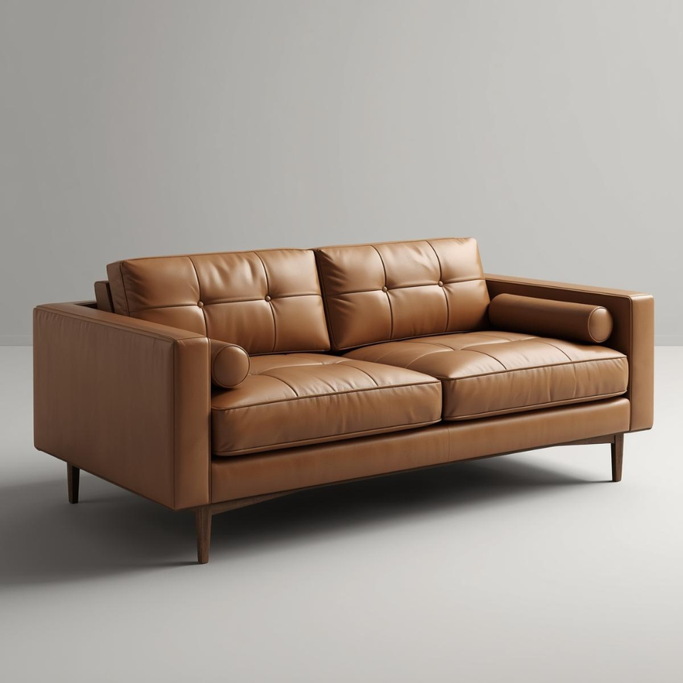 Contemporary Cowhide Leather Loveseat Sofa with Tufted Back Design and Decorative Pillow for Luxury Interiors Furniture