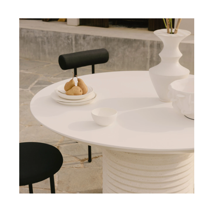 โต๊ะรับประทานอาหารกลางแจ้งที่ทำจากคอนกรีตเสริมเส้นใยที่มีลักษณะเป็นงานประติมากรรม