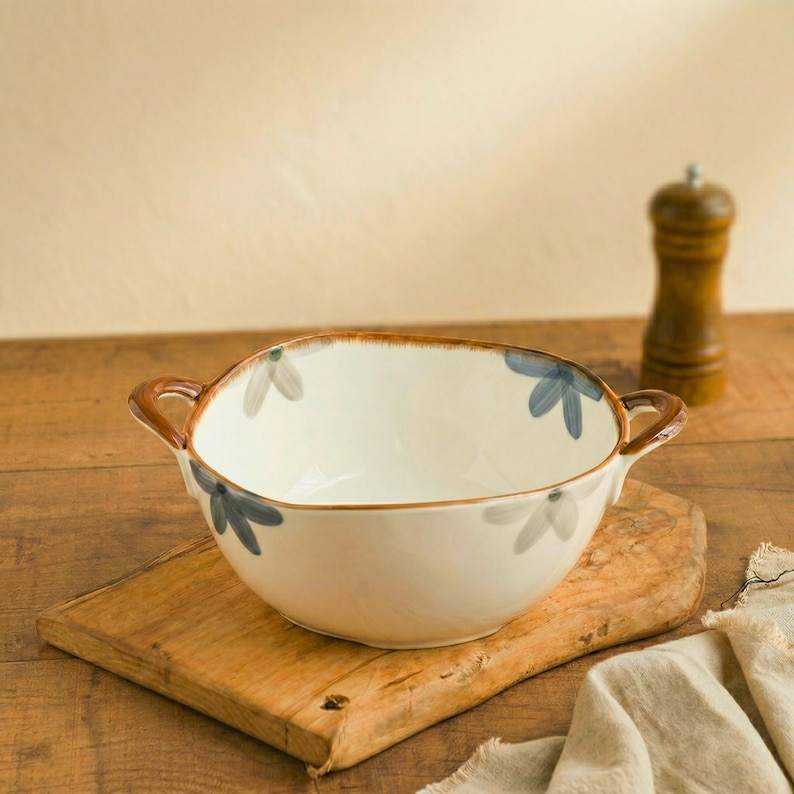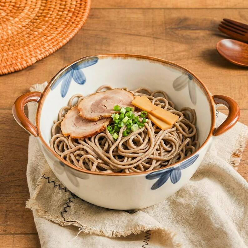 หม้อเซรามิกสำหรับเสิร์ฟบะหมี่แบบร่วมสมัย ใช้กับไมโครเวฟได้ สไตล์วินเทจ หรูหราเบาๆ แบบเรโทร สำหรับใส่ผักผลไม้สลัด โดย UO