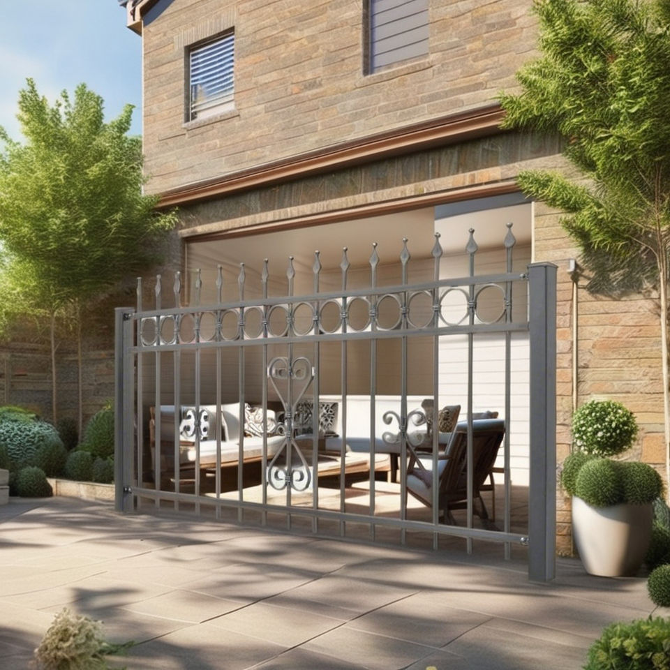 แผงรั้วเหล็กเคลือบสีเทาเข้มแบบทันสมัยสำหรับโครงไม้เลื้อยในสวนและประตูกลางแจ้ง (สีธรรมชาติ) สำหรับใช้ในฟาร์ม สูง 200 ซม.