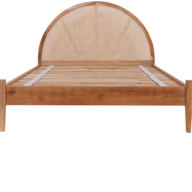 เตียงคิงไซส์ทรงกลมดีไซน์ร่วมสมัย ทำจากหวายและไม้สัก สำหรับตกแต่งบ้าน