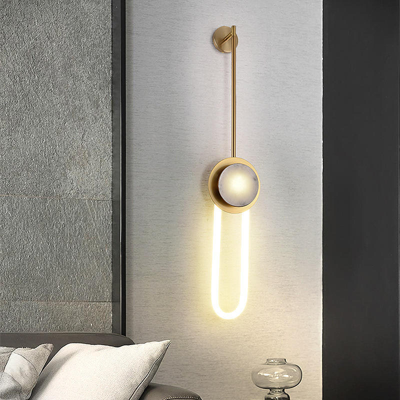 โคมไฟติดผนังหินอ่อนดีไซน์ร่วมสมัยสำหรับทางเดินโรงแรมและห้องนั่งเล่นวิลล่า ตัวโคมทำจากเหล็กพร้อมไฟส่องผนังด้านหลังที่มีสไตล์