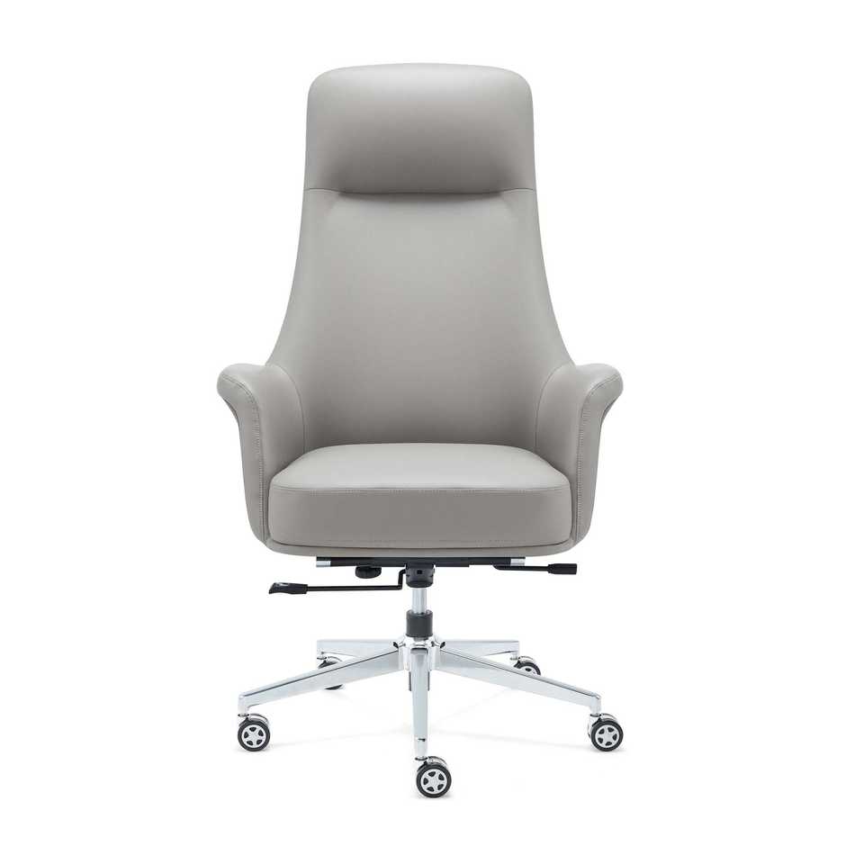 เก้าอี้สำนักงานหนังเทียมตามหลักสรีรศาสตร์ร่วมสมัยสีเทาพร้อมการตกแต่งโครเมียม