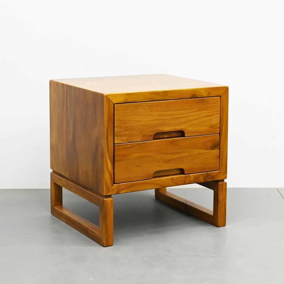 โต๊ะข้างเตียงไม้สักสไตล์ยุโรปร่วมสมัยพร้อมลิ้นชัก2ชั้นเฟอร์นิเจอร์ห้องนอนทำจากไม้สำหรับใช้ในบ้านหรือในโรงแรม