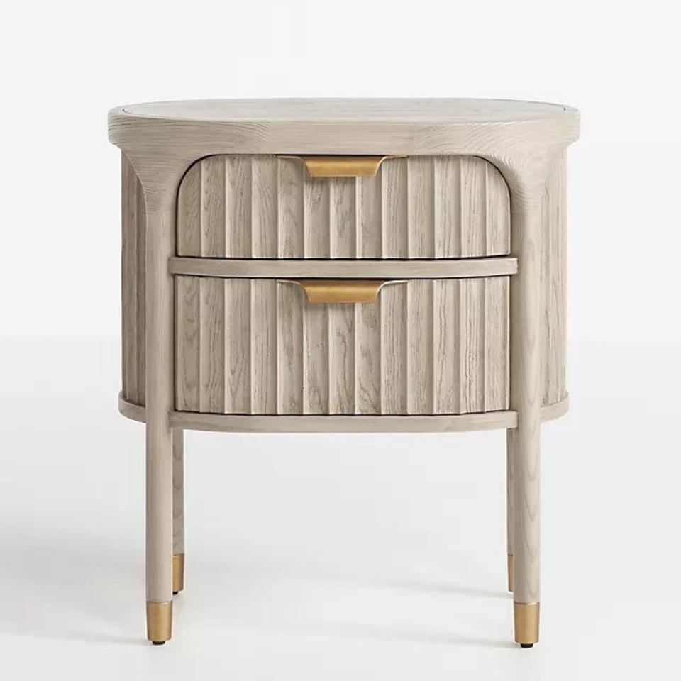 ชื่อสินค้า:โต๊ะข้างเตียงไม้ทรงกลมหรูหรา 2 ลิ้นชัก สำหรับห้องนอน