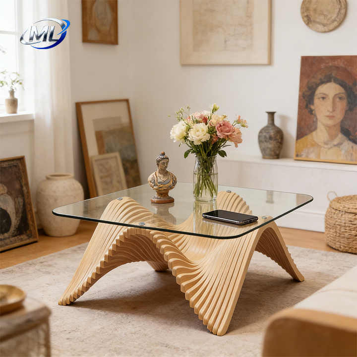 โต๊ะกาแฟไม้สไตล์ร่วมสมัย ฐานไม้ ดีไซน์สถาปัตยกรรมพาราเมตริกสมัยใหม่ เฟอร์นิเจอร์ห้องนั่งเล่น เป็นมิตรกับสิ่งแวดล้อม ทนทาน